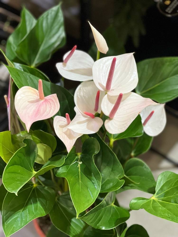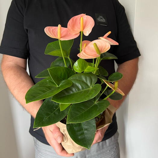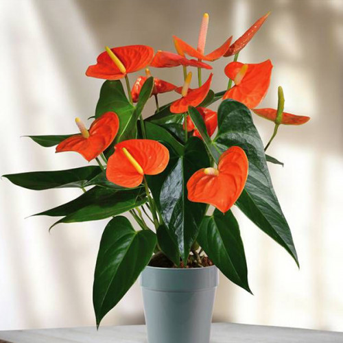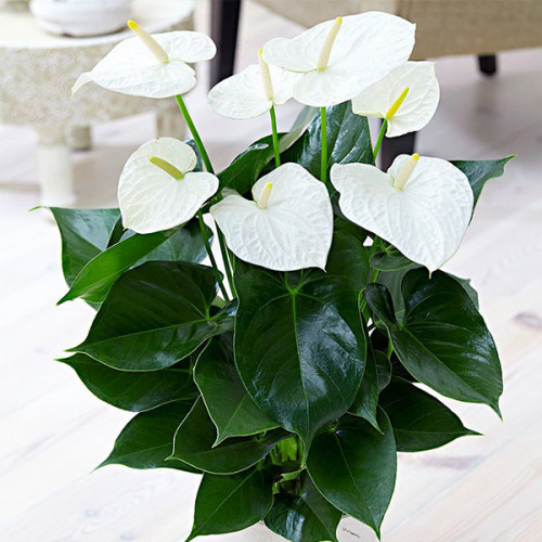 10-12 квітів формуються одночасно, а отже кілька посаджених поруч антуріумів створять неперевершену різнобарвну композицію.