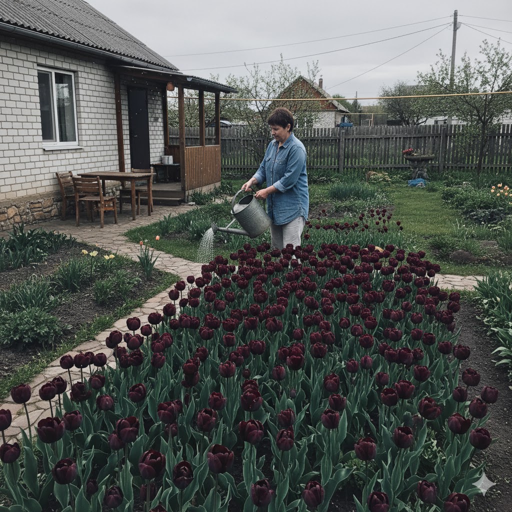 Тюльпани Queen of Night можна висаджувати навесні, і якісні цибулини все одно здатні порадувати красивим цвітінням уже в цьому сезоні. Після посадки в прогрітий ґрунт вони швидко вкорінюються та одразу спрямовують сили на формування міцних пагонів і бутонів.