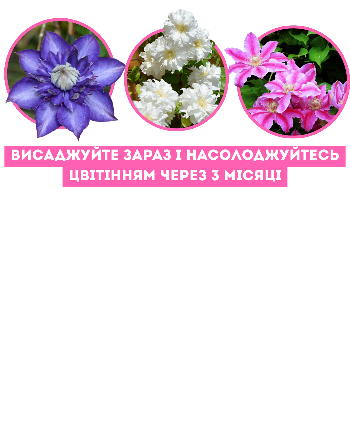 Квітуча мрія вже за 3 місяці після висадки! Обирайте з 3 розкішних кольорів — створіть сад, що захоплює погляд!